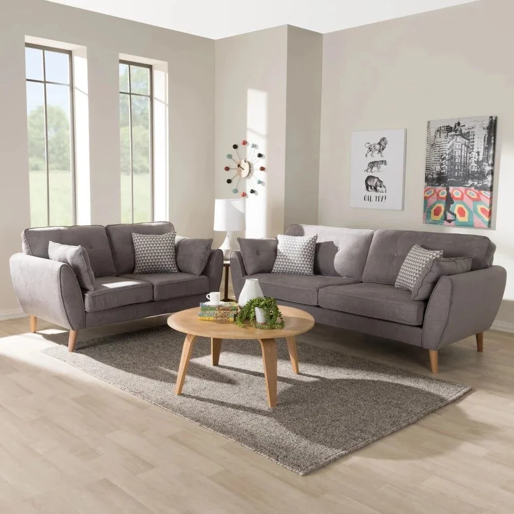 Dexter Modern Straight Line Chesterfield Sofa Set in Leatherette